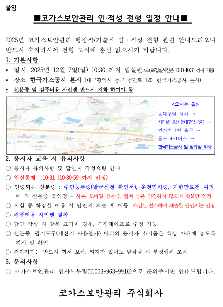[수정] 2025년 KOGAS보안관리(주) 기술직 정규/계약(교대조원) 채용공고