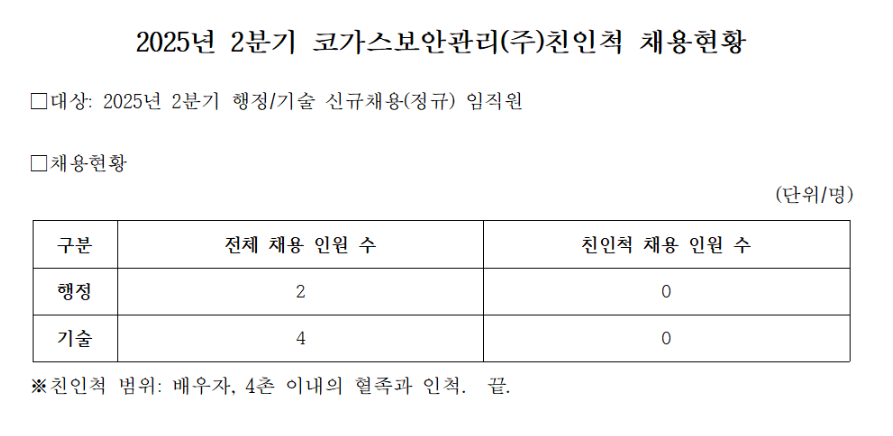 [정기공시] 2025년 2분기 친인척 채용현황 공시