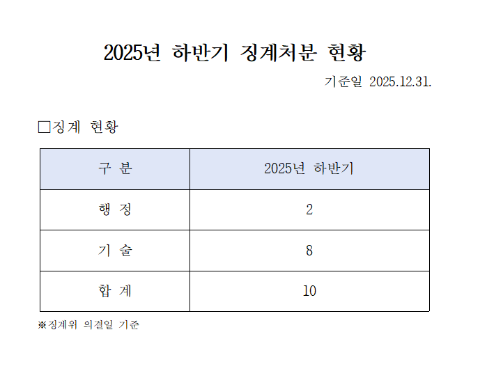 [정기공시] 2025년 하반기 징계처분 현황