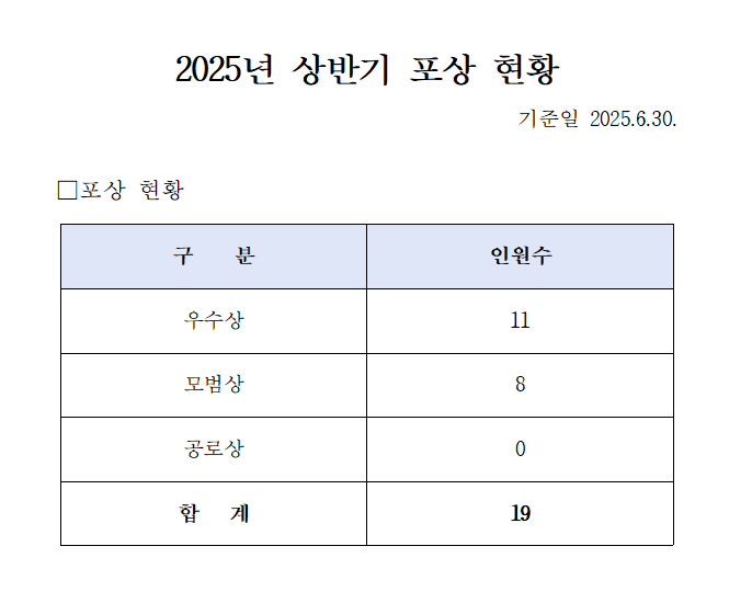 [정기공시] 2025년 상반기 포상 현황