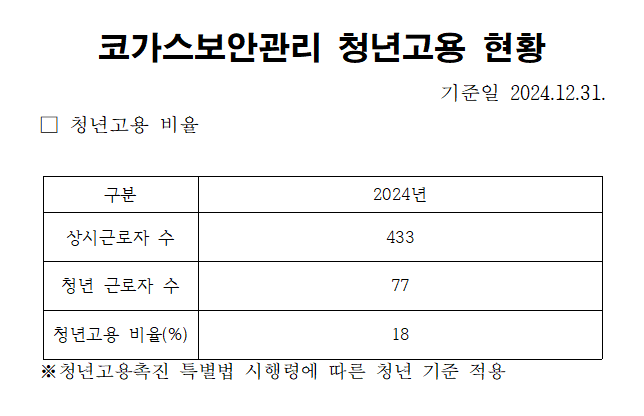 [수시공시] 2024년 코가스보안관리 청년고용 현황